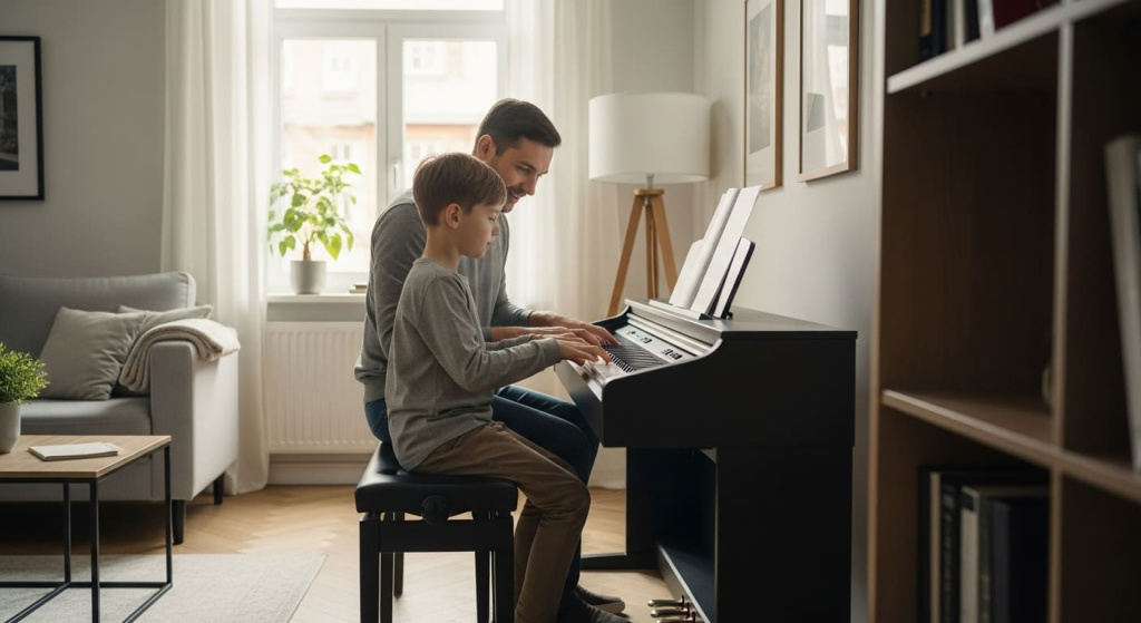 современное цифровое пианино часто оказывается практичным и достаточным выбором. Тем более что многие ученики всё равно занимаются на акустике в школе или колледже, а дома отрабатывают материал, используя цифру — из-за тишины, габаритов и удобства.